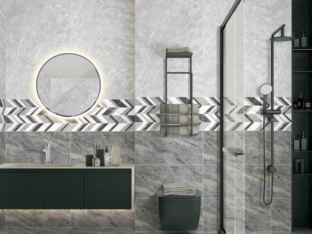 Gạch ốp trang trí vân đá độc lạ cho phòng tắm hiện đại