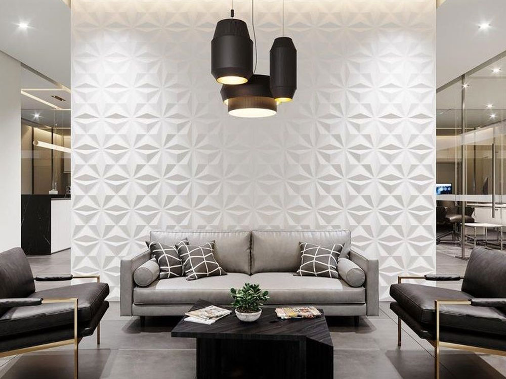 - Tạo điểm nhấn thị giác: Chỉ cần một mảng tường 3D tại phòng khách, sảnh đón hay sau sofa cũng đủ tạo ấn tượng mạnh mẽ và khác biệt cho toàn bộ không gian.
