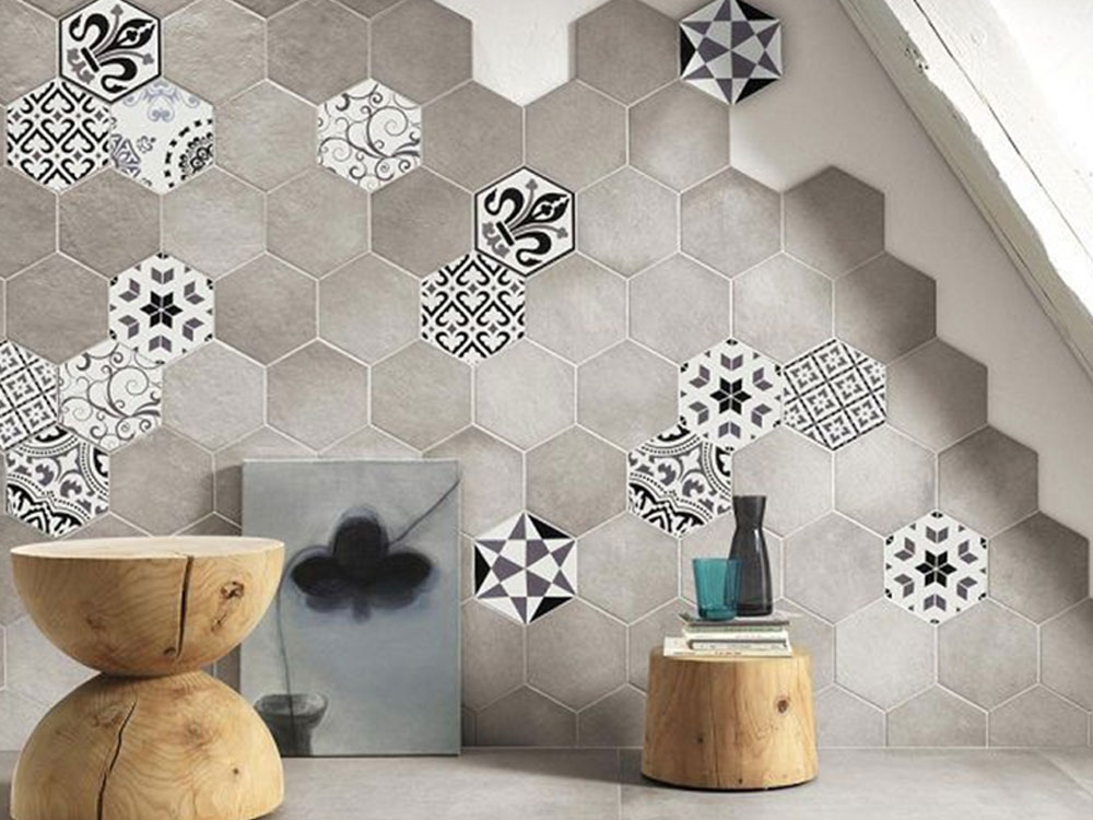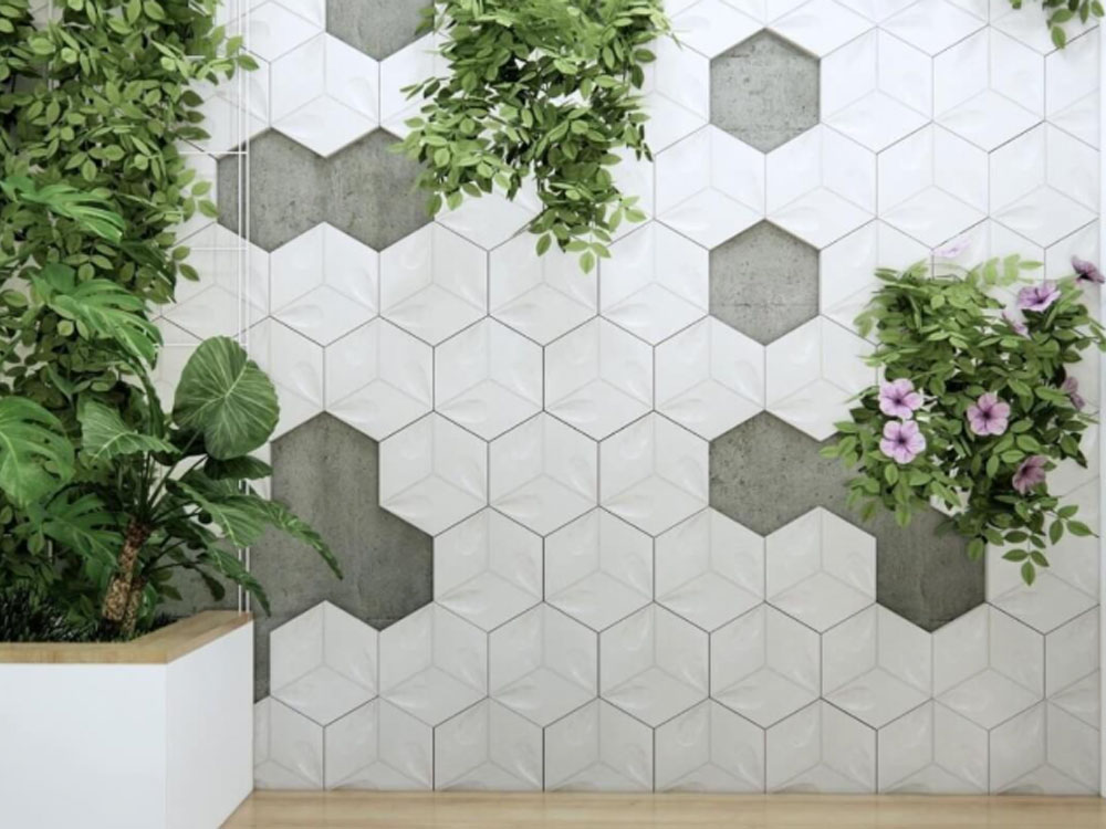 Gạch ốp trang trí 3D họa tiết lục giác cách điệu phong cách retro